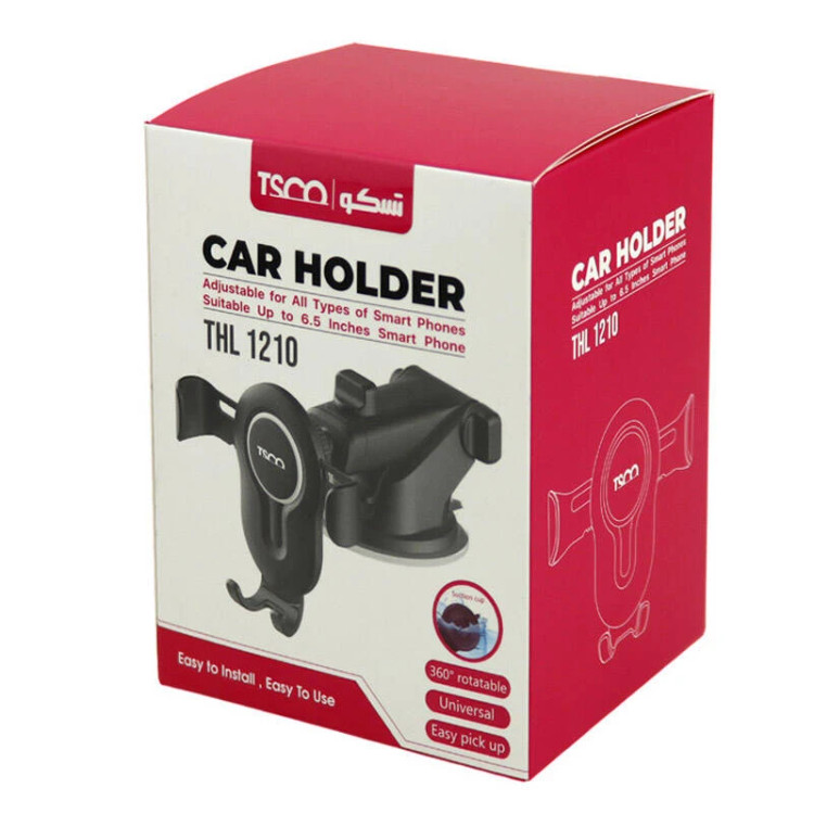 پایه نگهدارنده 1210 یا هولدر خودرو تسکو مدل THL 1210 با وزن کم و ابعاد مناسب برای انواع گوشی 3 تا 6.5 اینچ می باشد و بدون مداخله در دید راننده خودرو ، آن را در داشتن سفری ایمن یاری می کند.هولدر 1210 THL میتواند وزن اکثر گوشی ها تا سایز 6.5 اینچ را به راحتی و بدون نگرانی تحمل کند . از طریق گیره های نگه دارنده و چرخش 360 درجه در هولدر 1210 THL می توانید گوشی خود را نگهدارید. هولدر 1210 تسکو دارای قابلیت تنظیم ارتفاع و زاویه است.