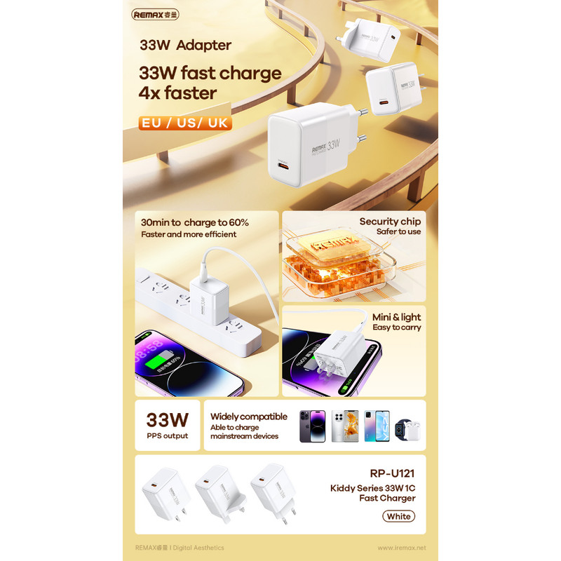 شارژر 33 وات ریمکس REMAX Kiddy Series 33W 1C Fast Charger RP-U121 محصول جدید شرکت ریمکس است که با بهترین متریال ساخته شده است و نیاز شما را کاملا بر طرف میکند.