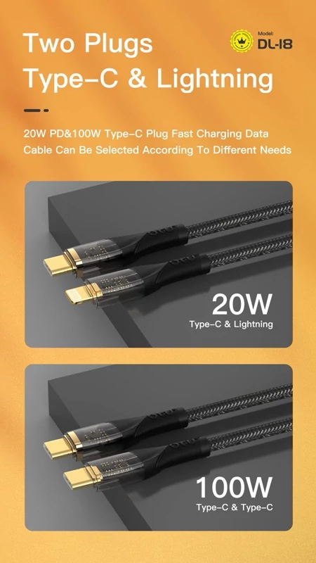 کابل دو سر TYPE-C مدل Otu DL18CC | کابل سوپر فست شارژ 100 واتی با کیفیت نظامی
