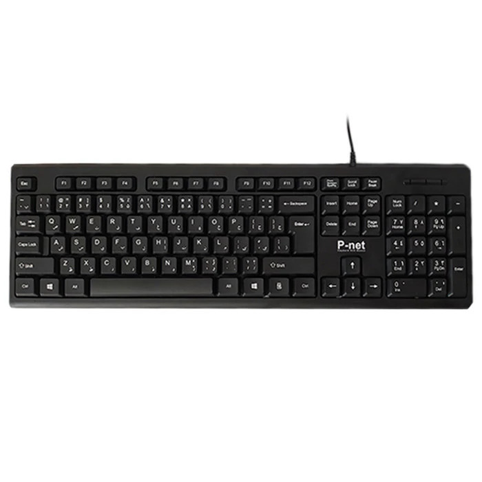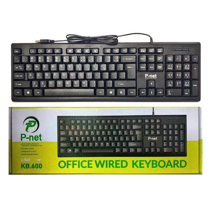 شرکت پی نت یکی از تولید کنندگان خوب لوازم جانبی کامپیوتر و … است که از مهم ترین محصولات شرکت پی-نت می توانیم به انواع هاب USB، فن خنک کننده پردازنده، شارژر و کابل شارژ، انواع کابل و مبدل، دسته بازی، کارت خوان، دانگل بلوتوث و وای فای، کابل شبکه، موس و کیبورد، سوئیچ شبکه، کارت صدا اکسترنال و اینترنال، هدفون و هدست و اف ام پلیر اشاره کنیم. محصولات پی نت (P net) در کشور چین ساخته می شوند و از کیفیت ساخت مطلوبی برخوردارند. کیبورد USB برند P-NET مدل KB600 یکی از همین محصولات باکیفیت میباشد. کیبورد ها جزو یکی از ابزارهای بسیار مهم و کاربردی کامپیوتر و لپ تاپ میباشد. کیبورد P-NET مدل KB600 محصولی با طراحی زیبا و استاندارد در ابعاد 27x128x439 میلیمتر می باشد که از طریق پورت USB به سیستم شما متصل میشود. همچنین دکمه های کیبورد این محصول دارای حروف حک شده فارسی است و با توجه به شیوه حک باکیفیت دارای ماندگاری نیز می باشد. این کیبرد از دو قسمت تشکیل شده و دارای دو سری اعداد میباشد و یا اصطلاحا دارای کیبورد ماشین حسابی است. این کیبورد توسط سیمی به طول 1.5 متر به سیستم شما متصل میسود و بهترین گزینه برای کارهای روزانه است.