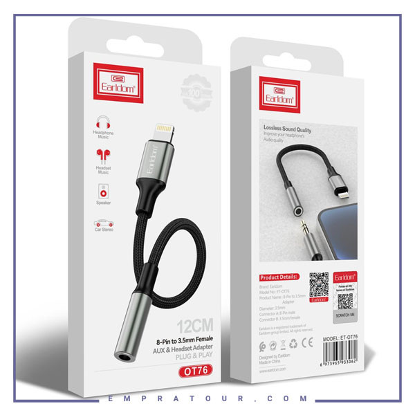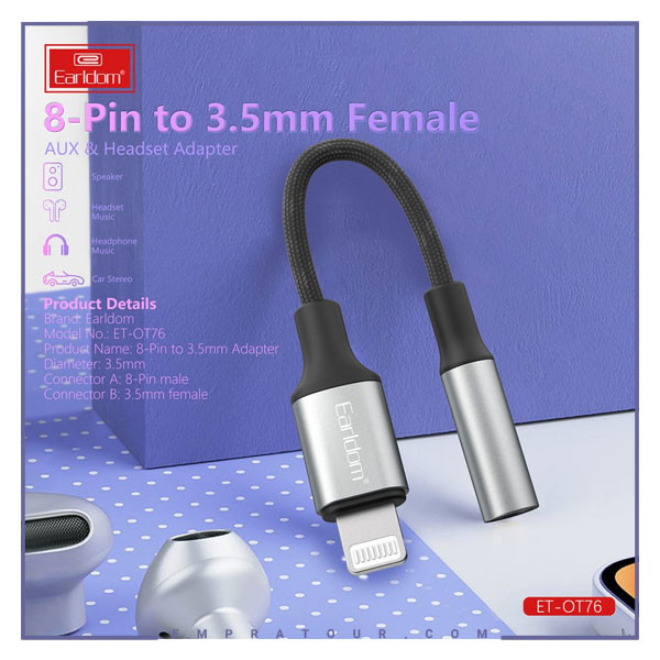 مبدل لایتنینگ به جک 3.5 میلی متری ارلدام مدل ET-OT76